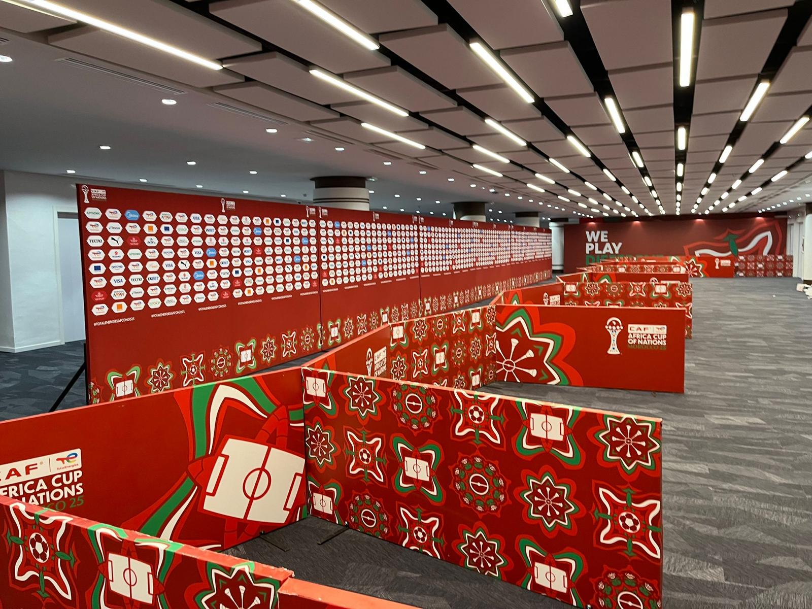 Cinq stades ont été intégralement habillés, dont quatre situés à Rabat et Casablanca, ainsi que de nombreux sites stratégiques tels que le Main Media Center, les centres d’accréditation, les terrains d’entraînement et les bus des équipes.